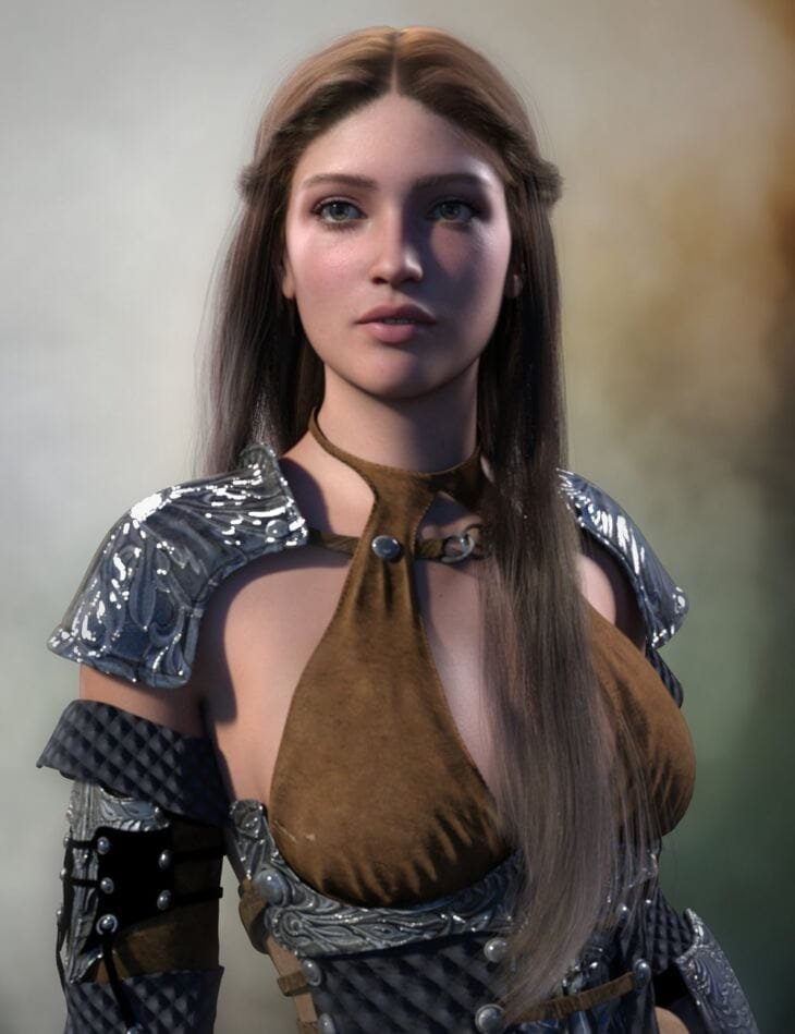 Joanie Hair for Genesis 9 is a long hairstyle with the front pieces twisted back. Enjoy this classic look in everything from historical to futuristic scenes.