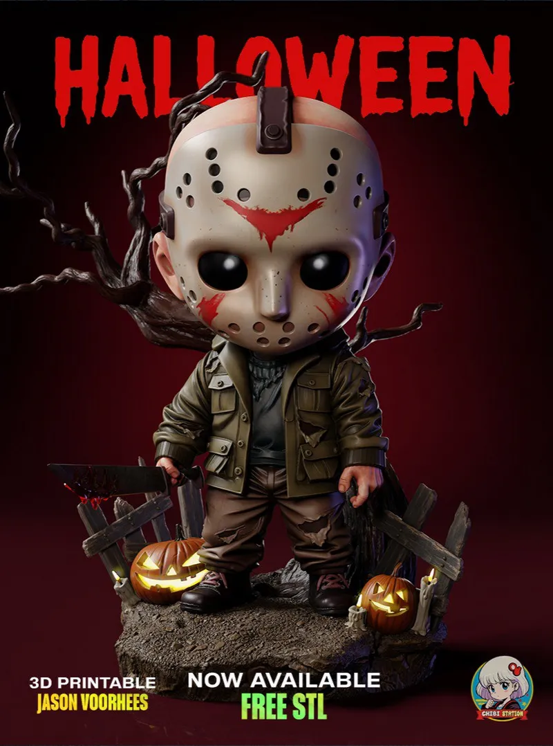 The overall form conveys a playful interpretation of the character Jason in a chibi style, characterized by oversized features and a compact stature. The posture reflects a dynamic stance, suggesting movement and engagement, while the arrangement of limbs and facial expression indicates a lighthearted demeanor. Elements such as the exaggerated head and smaller body add to the whimsical nature of this fan art piece. The composition emphasizes simple yet effective details that resonate with fans of the genre, creating a piece that is both recognizable and endearing. This model is a thoughtful artistic tribute suitable for collectors and enthusiasts alike.
