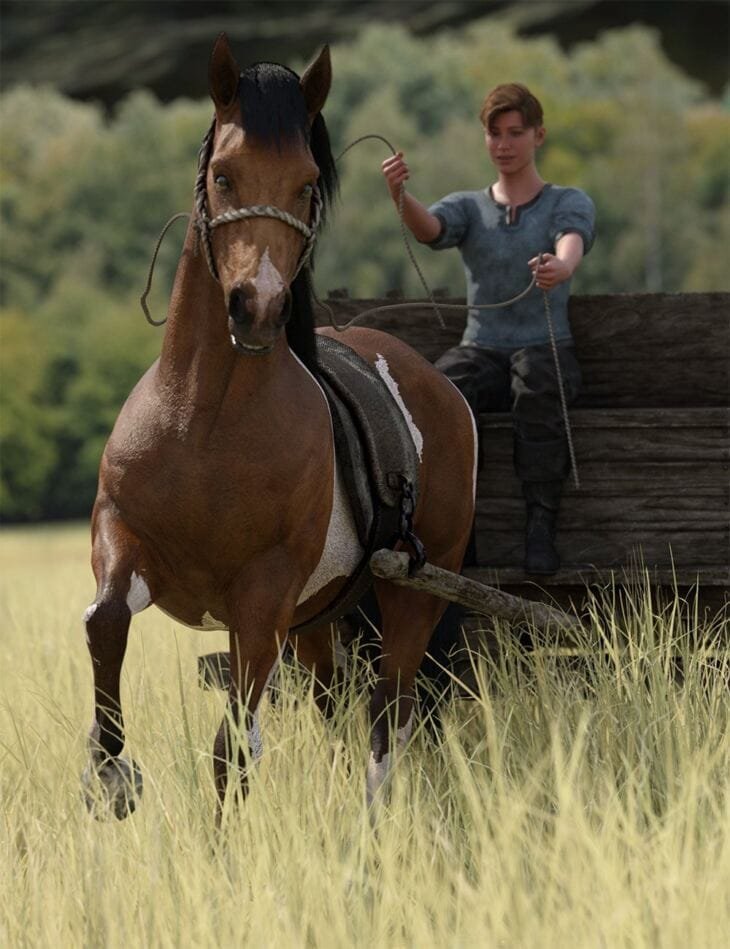 Old Cart Walk Poses for Genesis 9, Daz Horse 3, and Rustic Cart