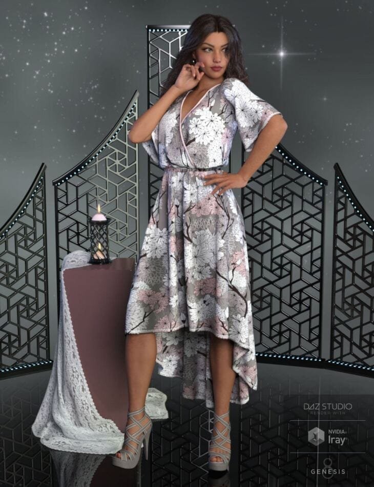 The outfit and morph are adjusted for the Genesis 8 Female figure for DAZ 3D Studio.